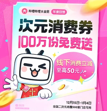 Dec.22百万张免费次元消费券来袭!哔哩哔哩大会员年度回馈盛宴已开启